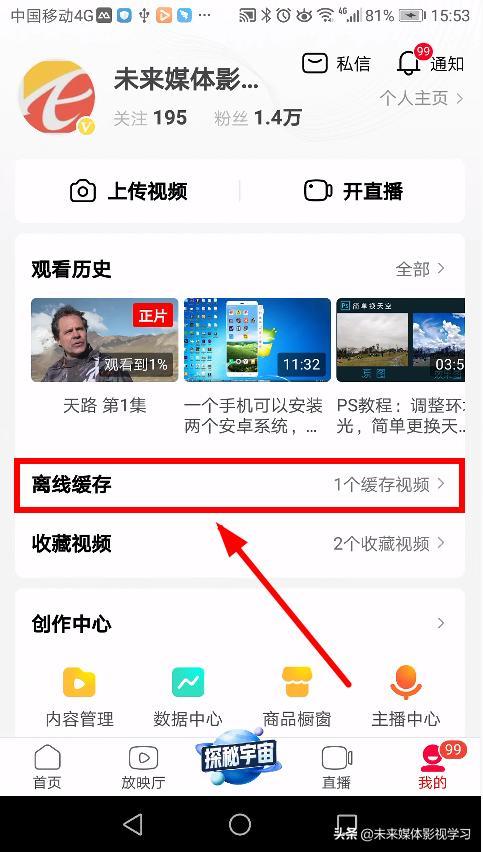 第四步:点击我的进去之后,你会看到离线缓存,里面有12上缓存视频,如下图所示