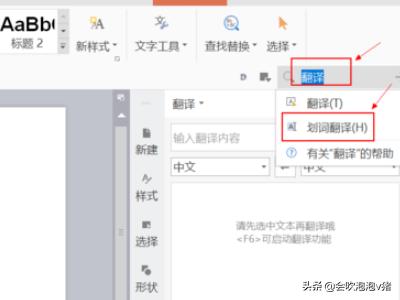 2、在右上角的方框中搜索“翻译”,,翻译框会跳出来。再选择“划词翻译”。