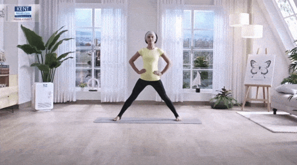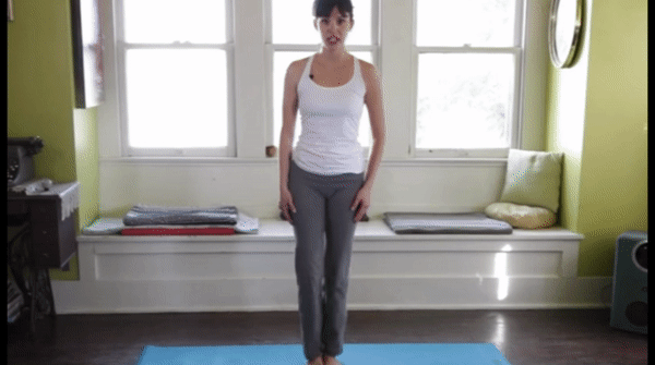 ★双脚打开与胯同宽,脚趾向上张开并慢慢回到地面。