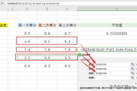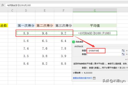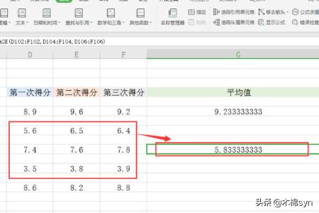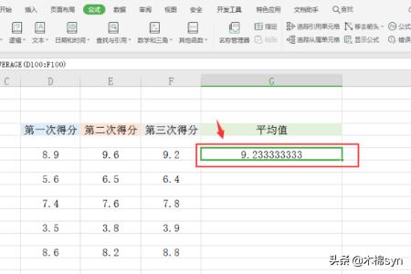 1、随便选择一张excel表格,双击打开。可以看到表格内,有三列数据,分别为一二三次得分,用于计算平均值。