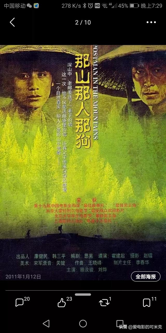 推荐2.《那山那人那狗》1999年刘烨的电影处女座,记得第一次看是在电影频道跟父亲一起看的,父子情很容易戳到人的泪点。景色宜人,画面很有诗意,以及后来才知道片中的美女是陈好。