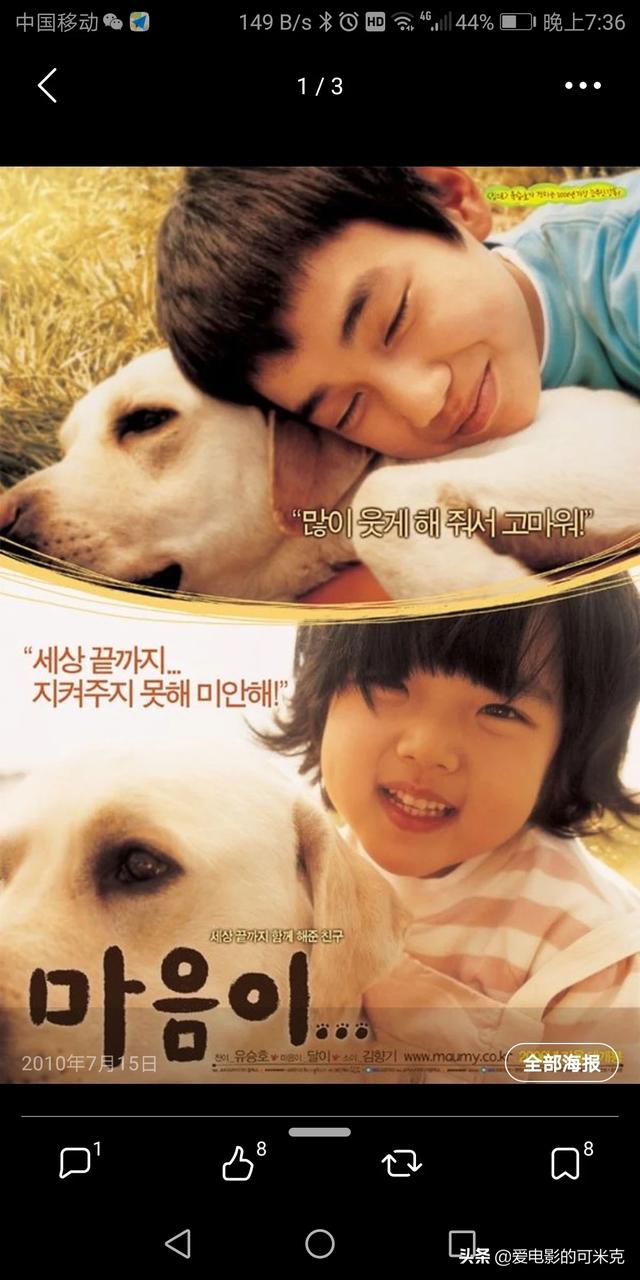 推荐3.《人狗奇缘》2006年的韩国电影,看片名就知道是关于人狗之间的故事,两位小演员很出色,尤其是小女孩的扮演者金香起尤为出色!
