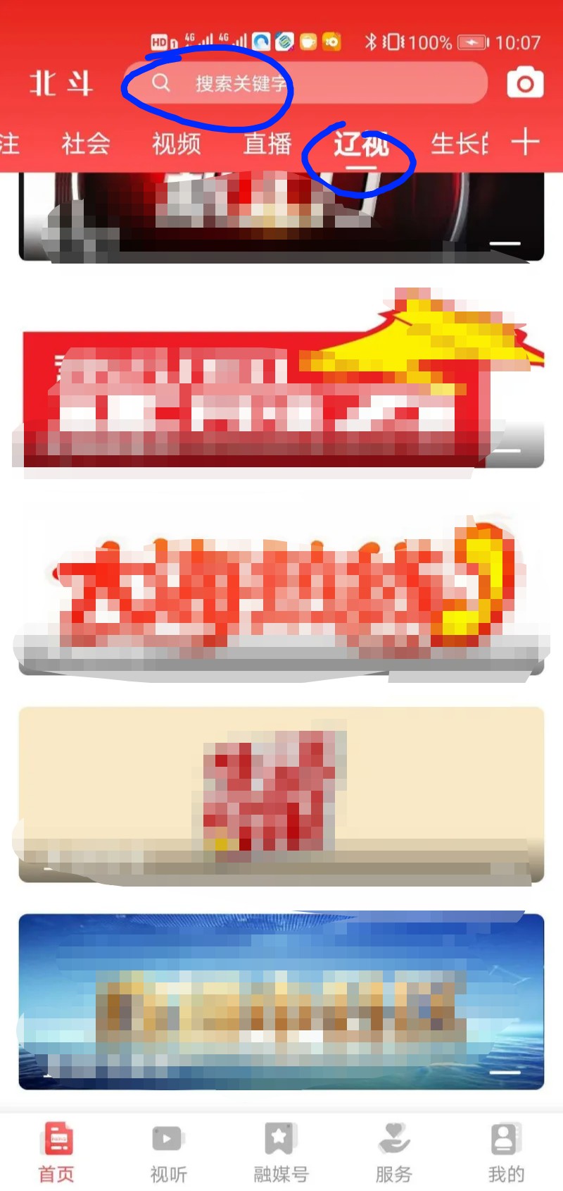 在app搜索一栏下方找到"辽视",点击进入。