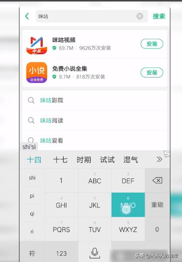 1、打开手机上面的应用商城,在搜索栏目输入:央视影音,然后点击右侧的下载就会自动下载安装软件。