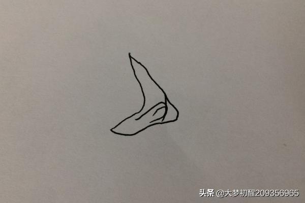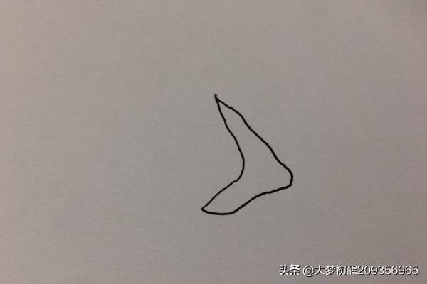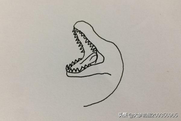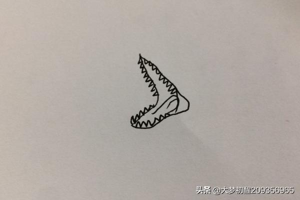 1、准备好笔和纸,先画出两条线,是迅猛龙张开的嘴。然后再把嘴画完。