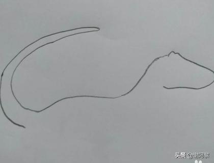 第二步:画上弧线勾勒出背部和尾巴,背部驼起来;