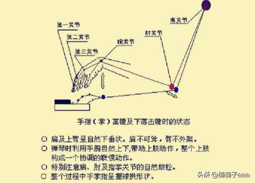 快速学习钢琴指法的方法:1、手指弯曲自然、如下图一般同手掌形成一个半圆形,握球状球状。2、掌骨关节(第三关节)以及所有手指关节都应该凸起。要避免和纠正手指第一关节、第三关节(指掌关节)塌陷呈凹状。3、手指应自然分开原则上刚好—个指头对准—个...