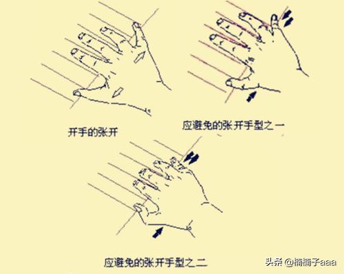 3、手指应自然分开原则上刚好—个指头对准—个琴键。